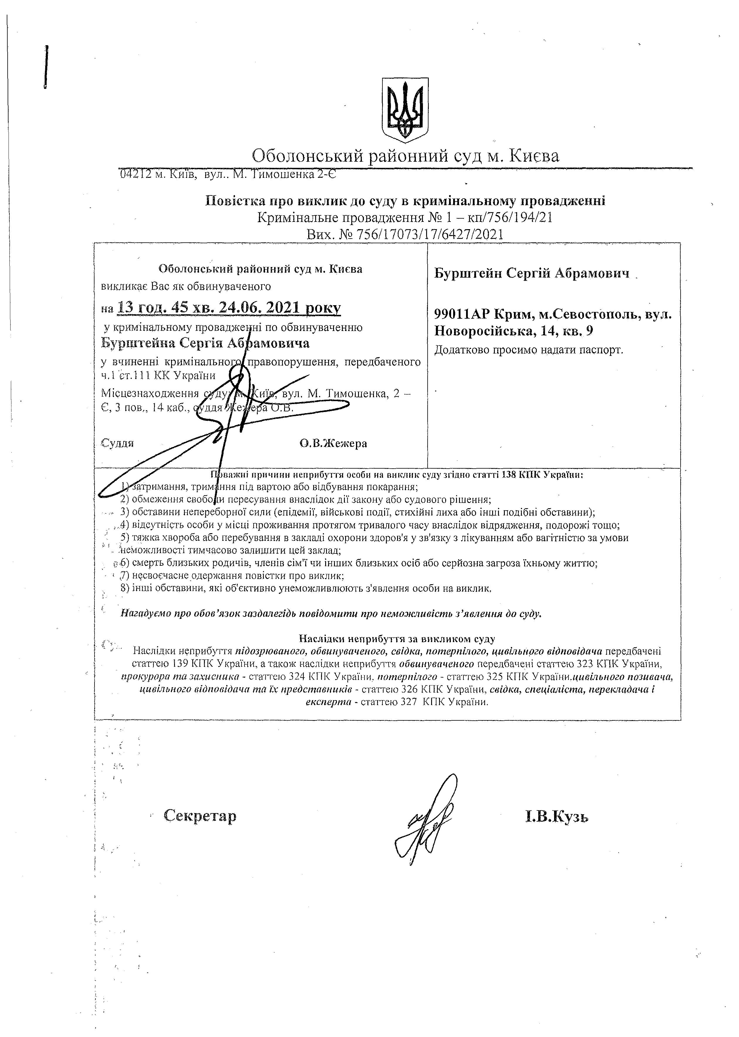 Оголошення про виклик до суду