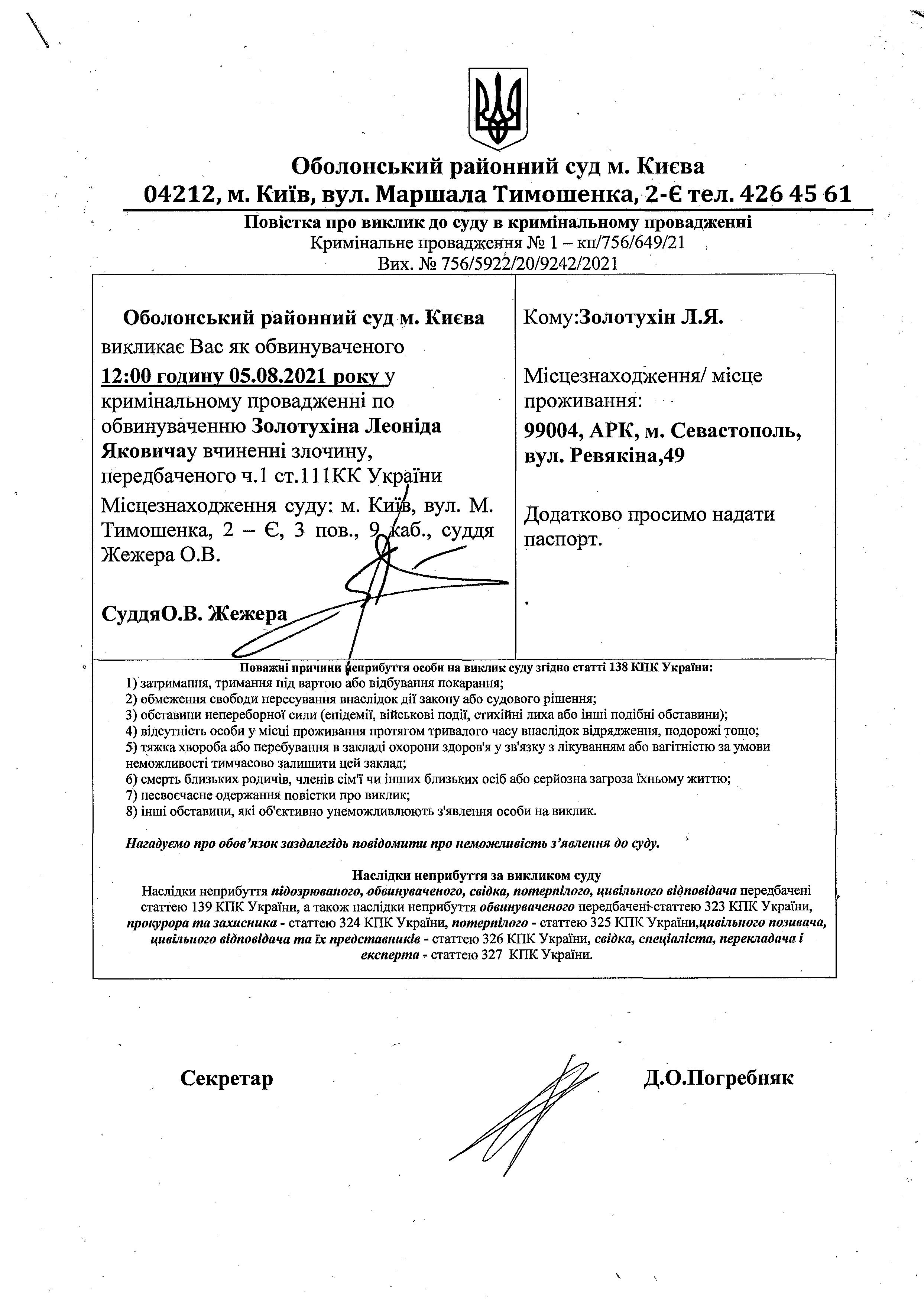 Оголошення про виклик до суду